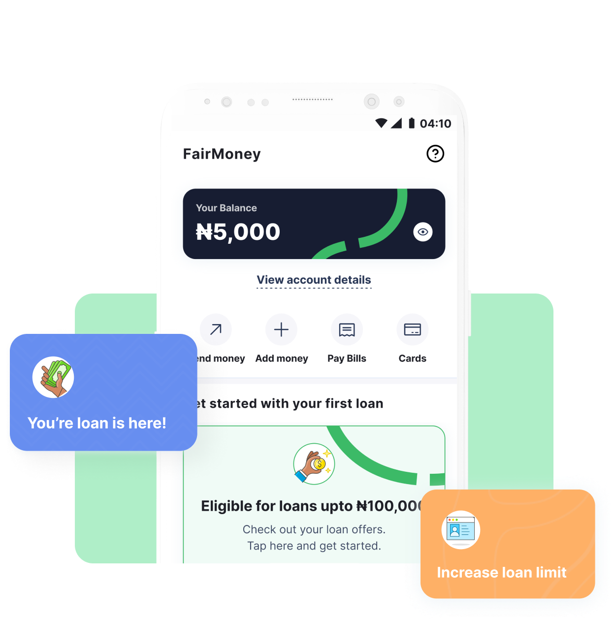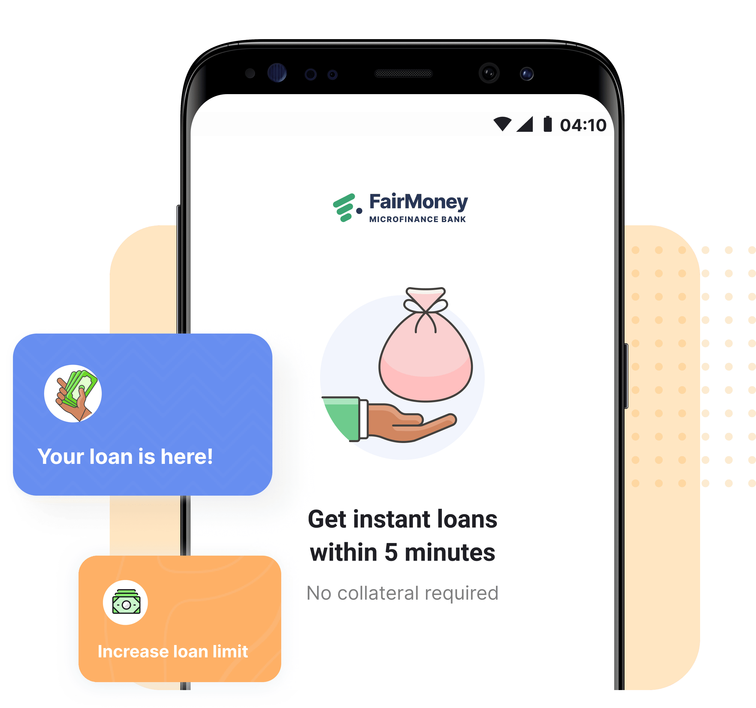 You can get an instant loan of up to ₦ 1 mn without collateral. Plus, you do not have to visit a bank branch. Apply and receive your loan directly from your phone.